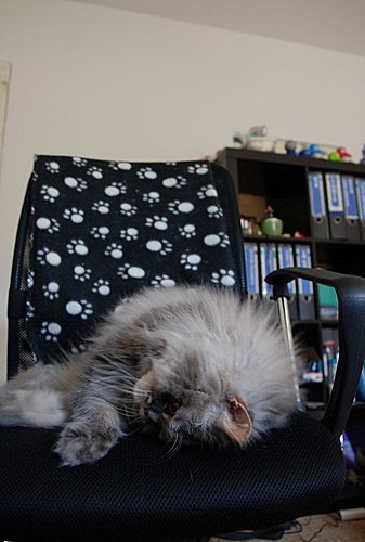 姆姆,坐起來還算是蠻輸湖,如果冬暖夏涼當郎更好。暑假的時候不曉得吃到蝦咪,嘴巴腫的跟小豬一樣,被室友帶去看醫生還給偶打了個消炎針!喵的咧!!偶一直罵髒話他們都還繼續欺負偶!氣屎偶惹~過沒幾天又說要給偶作健康檢查,打預防針,抽血超恐怖,偶差點要拿命跟他們拼了!偶恨那個醫生!!想到就氣!檢查完不過就是個膽固醇一點點過高而已,室友就說偶要被克制食量,偶才5.5公斤,又沒有很胖好不好。喵!還好年底的聖誕節,室友又送我這個聖誕禮物,偶粉喜歡唷。算是2011完美的結速啦~喵~