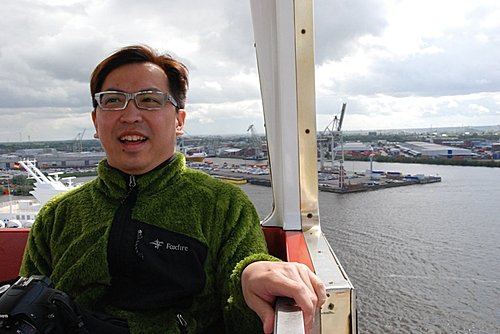 五月15日漢堡港口坐船及嚇屎凱倫的摩天輪行程.這天是個風大氣候不穩定的天氣,坐交通船遊"易北河"時,突然間浪打過來噴的大家滿身濕!這實在是太刺激啦~不過可憐的捧油們正在清理相機...