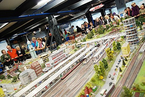 一群人買完票浩浩蕩蕩的往展場行動,馬上被眼前的景象震住,不愧是德國血統!壯觀的迷你鐵道模型,每個環節都令人讚嘆不已.