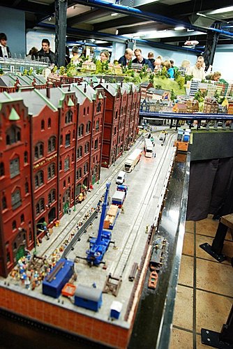 裡面的每項細節都那麼精緻可口 "Miniatur Wunderland 迷你仙境照片集" ,時間完全不夠細細品嘗,聽說還有很多有趣的點我都沒發現到,真是謀菜~此行( Sep.25.2010 )因為才剛到德國快兩個月而更喜歡漢堡,不只是那讓我心花怒放的展覽;還有裡面很貼心讓各牌各型號的相機們免費吃飽的整齊充電櫃;而且現場的民眾無論大人小孩都乖乖的用眼睛去觀賞去感受,不會隨便觸碰擺設或者把忙碌的車輛拿起來 ( 其實我內心很想這麼做..XD ).噢!希望他們的飛機區趕快建好,醬今年就又可以再去參觀啦!