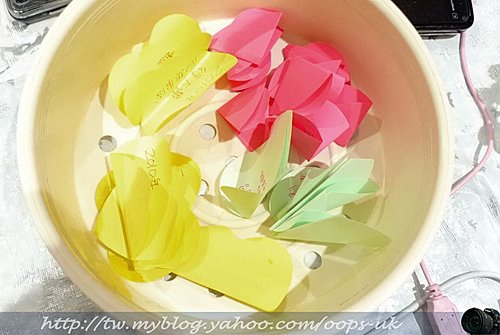 請準備3M便利貼,粉紅黃色都可,把新的一年夢想都寫上去愛寫幾張就寫幾張,如果要專業點可在便利貼上多加註明自己的姓名住址還有日期~喀!然後就可以拿去電鍋蒸了。嗯~尼砍砍尼砍砍,這不就是夢想成蒸嗎!過農曆新年還可以再用這招唷!