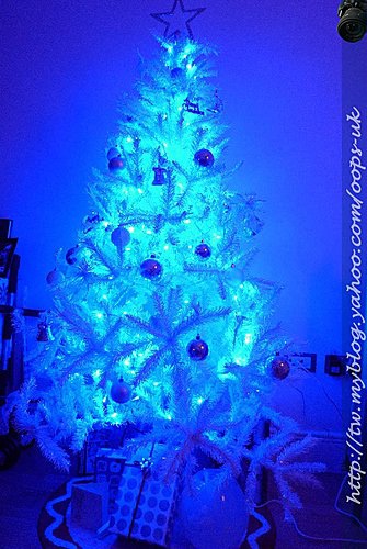 白色聖誕樹配著藍光好夢幻好浪漫哪!