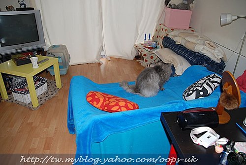 原定完美行程是這個時候的安斗應該在德國換他爹照顧、而我也該在台灣的土地上逍遙快活。但計畫總趕不上變化,安斗爹在德國的重重關卡(*註*)還沒有破關斬將,種種因素考量相加比較後,貓兒子還是得繼續在英國待到有稍微明確一點的方向出現才能行動。所以,愛台灣的唷拉一家租約11月初到期,還好有善心中國同學胖達及霏霏收留了差點流離失所的老娘我,於是繼續帶著貓兒子過著寄人籬下的生活。