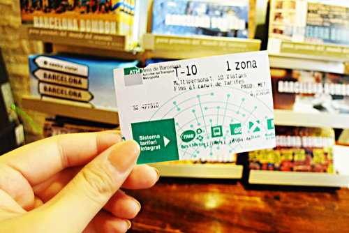 註: T10票是巴塞隆納超級划算便宜的交通票!路痴和含果仁在巴塞隆納四天三夜的交通都靠它。€8.45 ( 1 Zone)是去年的價格,2012年漲到:€9.25,可以坐十趟,75分鐘內不管換幾次交通工具它都只算一趟,重點還可以多人使用!說有多貼心就有多貼心!不然如果只買單程票的話好像是€1.45,漢堡什麼時候才會出這種好康?!