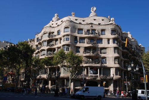 除了衝著陽光沙灘與肉體之外,也是有許多觀光客們為了膜拜高迪"Antoni Gaudí i Cornet"的建築們而來到巴塞隆納滴!於是乎,從肉體沙灘離開,前往下一個旅館後,就殺去巴特略他家"Casa Batlló "(門票18多歐元,學生票14多歐元,但我們學生証都放在房間忘了帶..更!)。