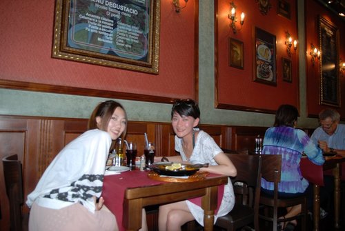 第一天911住在靠近海邊兒的旅館,於是乎兩人晚餐就到海產攤(*註)吃海鮮大餐,但來到一間要點生蠔沒生蠔,要龍蝦也沒龍蝦的海鮮店,吃到假裝是龍蝦的蝦和喬裝成干貝的鱈魚,除了口味重了點,其實還不錯吃柳!晚上回到旅館打開電視竟然還有西班牙文的七龍珠卡通,好懷念~遠目...