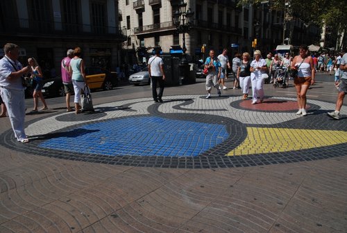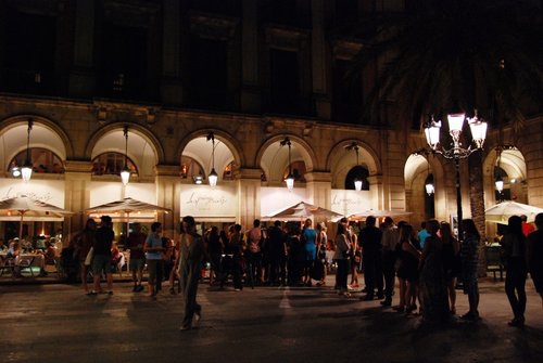 我想蘭布拉大道應該是個士林夜市等級,琳瑯滿目的攤販商家和餐館、華麗特異的街頭藝人、晚間熱鬧的人群,這樣風情萬種的地方,頓時讓人忘卻巴塞隆納同時也是萬惡之城,治安可是個惡名昭彰(*註)。