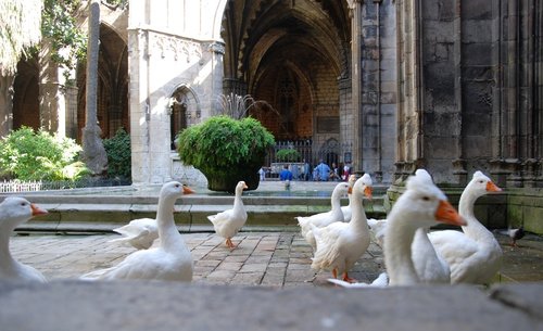 趕場的第三天早上穿越了大街小巷,來到"哥德區"(巴塞隆納老城的中心)還有"巴塞隆納主教座堂",沒想到裡面有好多隻白鵝好勾嘴。