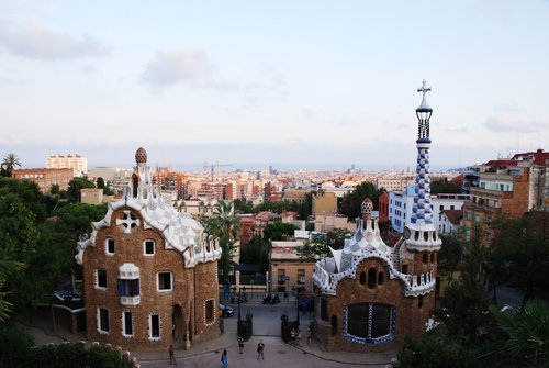 千辛萬苦遇到好心的西班牙妹帶我們上到正確的公車,經過一條條的好漢坡,終於來到奎爾公園,到了山頂看著風景~啊!這一切都是值得的哪!