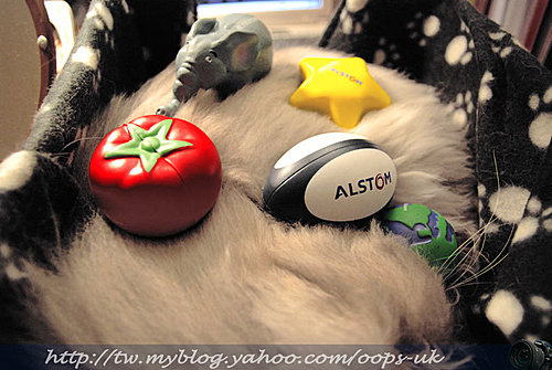 "喬治"是瑪麗亞送我的小玩具,當然,新來的總得先跟安斗拜個貓頭。